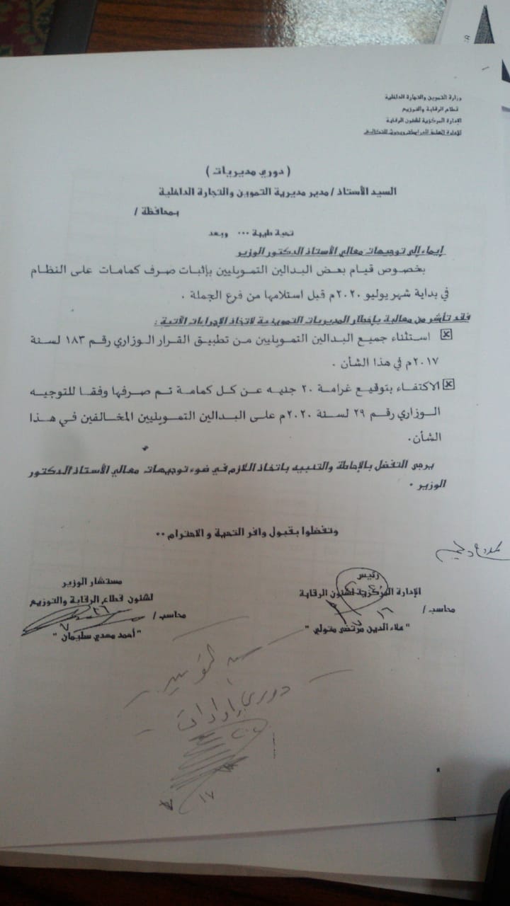 فى حالة اثبات مبيعات خاصة بالكمامات المربوطة كسلع تموينية للتجار التموينين ومشروع جمعيتى يكتفى بدفع غرامة وقدرها 20 جنيه على الكمامة الواحدة التى تم اثباتها على ماكينة الصرف الخاصة بالتاجر